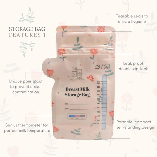 MyLO Breast Milk Storage Bag (250ml) with Oxygen Barrier, Pour Spout & Temperature Sensor