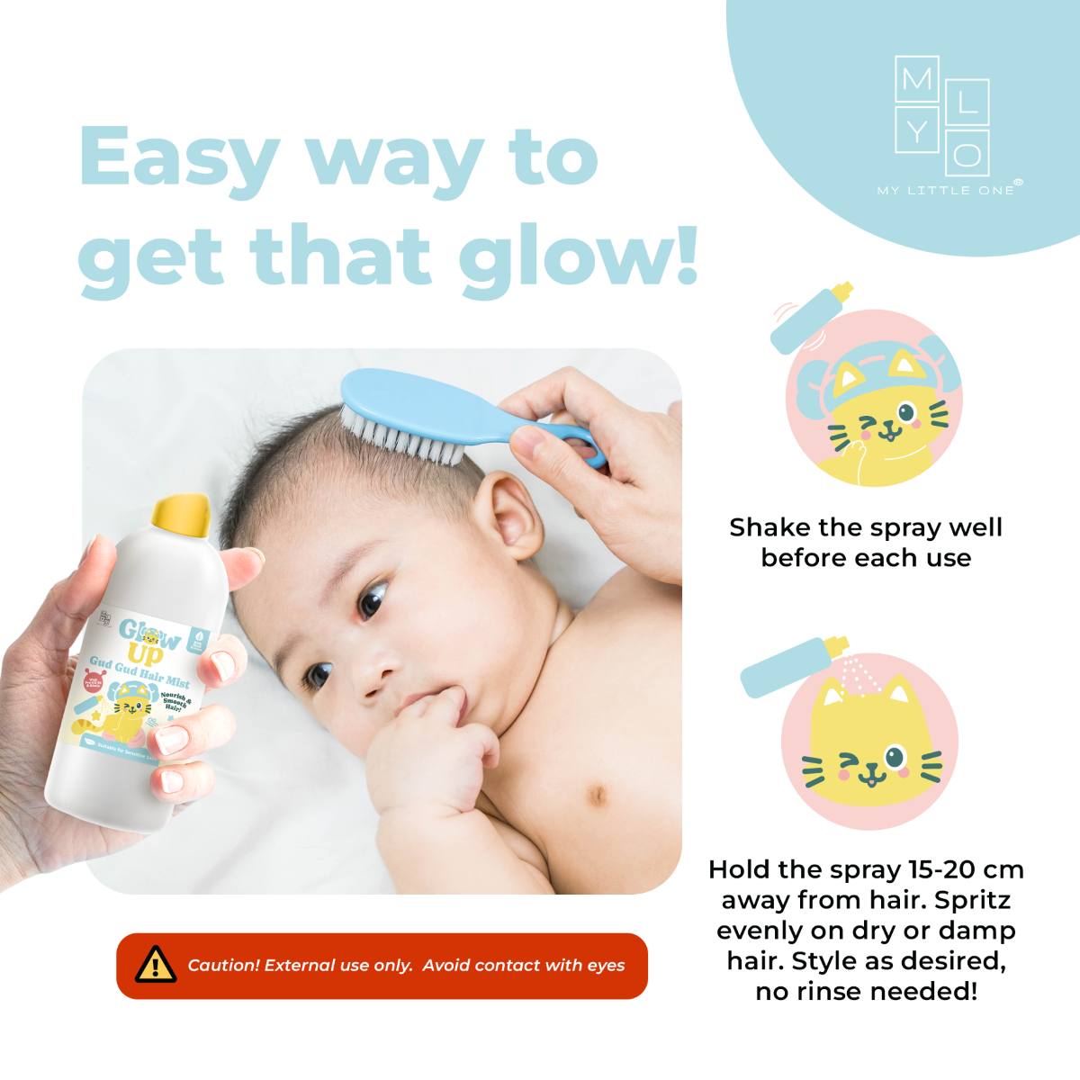 Meet the newest addition to the MyLO Glow Up Series, the Gud Gud Hair Mist, a gentle daily spray that nourishes baby’s hair and scalp for a healthy, natural glow. Enriched with Pro-Vitamin B5, Biotin (B7), and soothing plant extracts, this mist detangles knots, hydrates dry scalp, and brings back smooth, shiny hair with no rinsing needed!